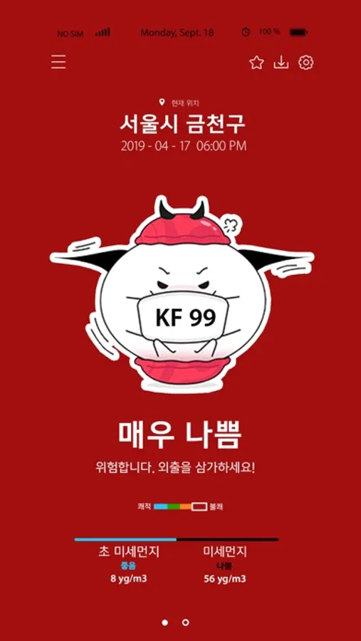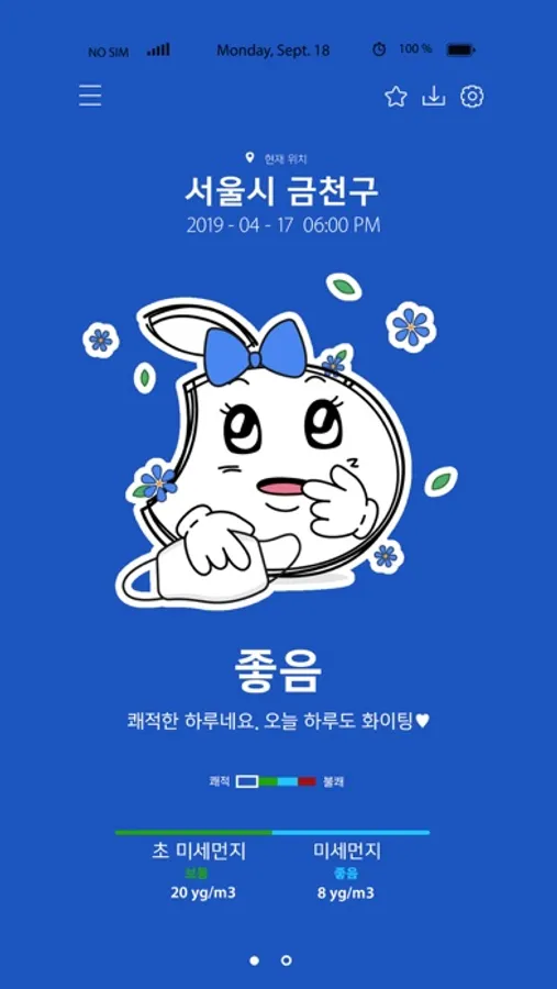 오지다씨 외에도 다양한 캐릭터로 정확한 미세먼지정보를 확인하고 지인과 공유해보세요~!