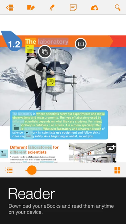 · Make contextual notes, highlight text and see them in a centralized section for easy reviewing.