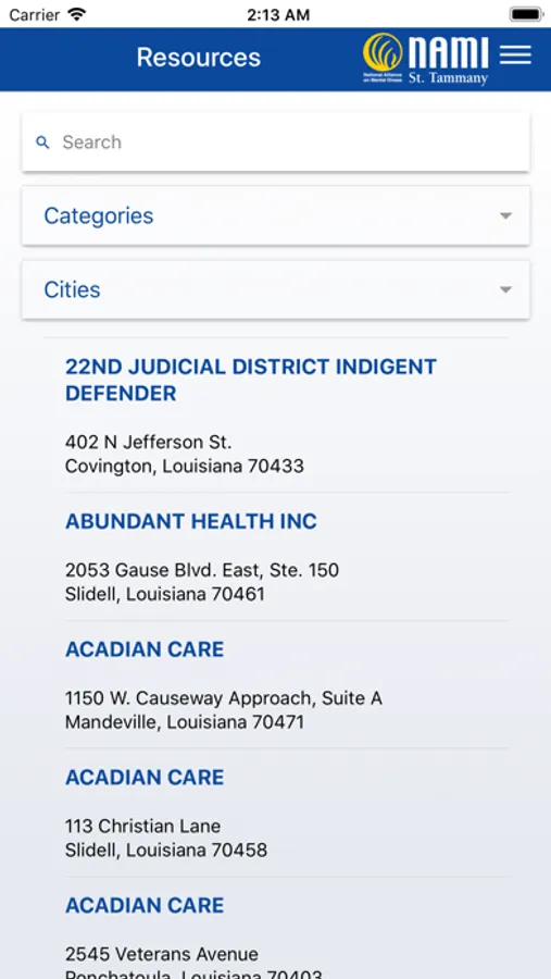 With our fragmented and complicated behavioral health system, the purpose of our mobile app is to connect first-responders with additional resources in and around St. Tammany Parish, LA at their fingertips to aid them when they encounter someone who is in a behavioral health crisis? This provides first-responders with a searchable online, up-to date resource directory by categories they can refer to the individual, caregivers or family members if, they do not need immediate hospitalization. And resources can be provided for post-hospitalization, as well.