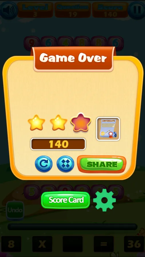 At beginning, a student selects a difficulty level ranging from 1 to 30 and then starts the test. During each test, the student must answer as many questions as possible in a fixed amount of time. The final score is based on the overall ratio of the correct answers to the total questions answered. Students can review their test scores at the end of each session. There are lists of table showing the test scores for each session in each difficulty level. Therefore, the students can find out their learning progress while playing the game.