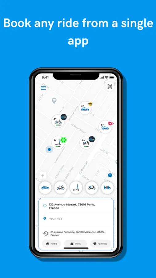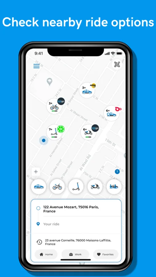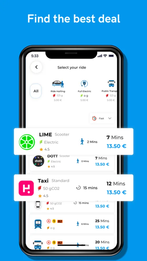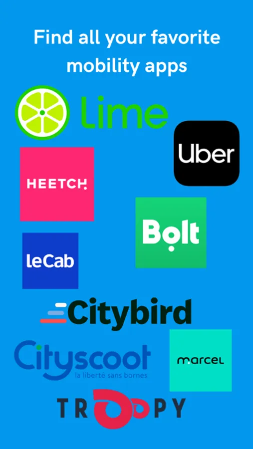 We work with most of the transport operators (Uber, Lime, Bolt, Taxi G7...). We have integrated more than 200 partners on our application, to allow you to access all the possible transports for your trip.