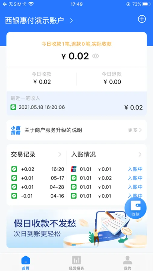 “西银惠付”扫码支付聚合平台是西安银行通过与七大平台对接而开展的互联网创新业务。客户线下消费时,可选择扫描商户的收款二维码或被商户扫描其手机应用中的付款二维码完成消费交易。该业务支持微信、支付宝、京东、翼支付、银联二维码等七种支付方式。