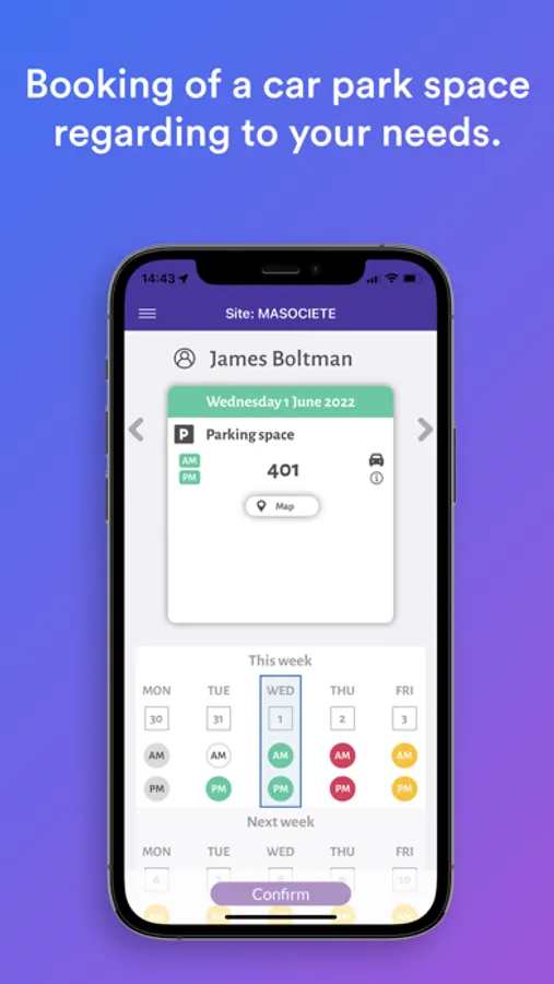 - Dynamic map of the car park and workstations,