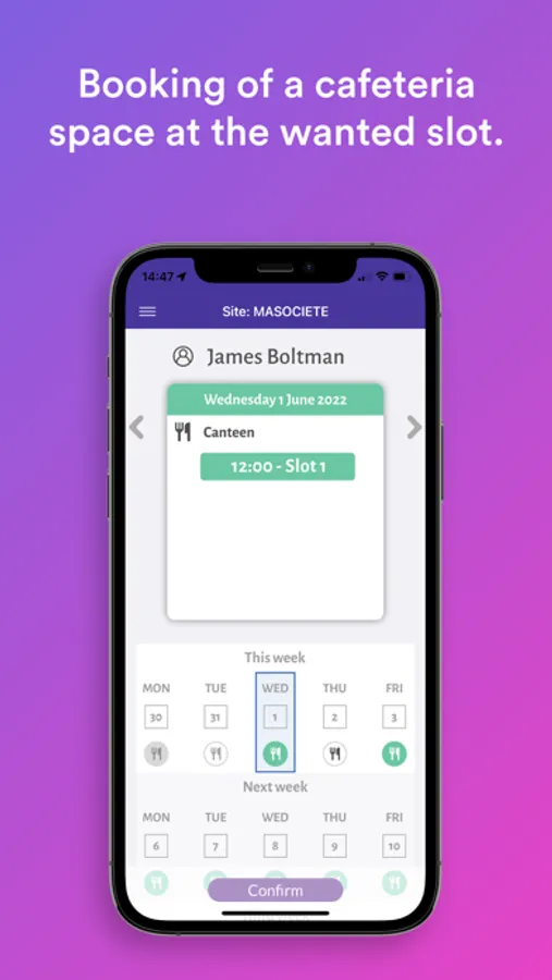 - Reservation of a slot in the cafeteria,