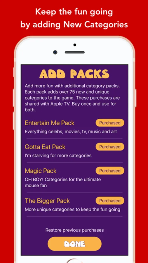 The Most Unique Game includes a free category starter pack. Play a few rounds and you won’t be able to resist adding new category packs to keep the fun going.