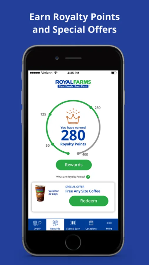 Welcome to the Royal Farms ROFO Rewards App. We are your new go to for earning points and redeeming them for fresh, never frozen, World-Famous fried chicken (along with many other customer favorites)!