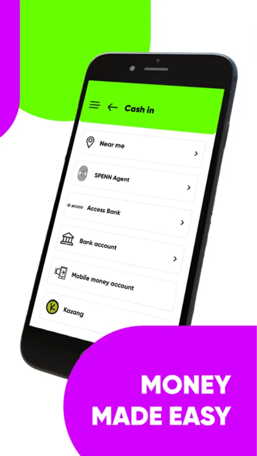 • Top up your account and cash out using SPENN Agents, Business Partners and banks