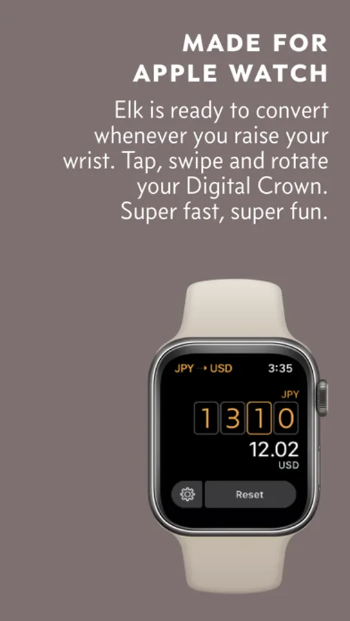 On the Apple Watch, Elk is optimized for watchOS 3. It launches instantly, and is ready to convert whenever you raise your wrist.