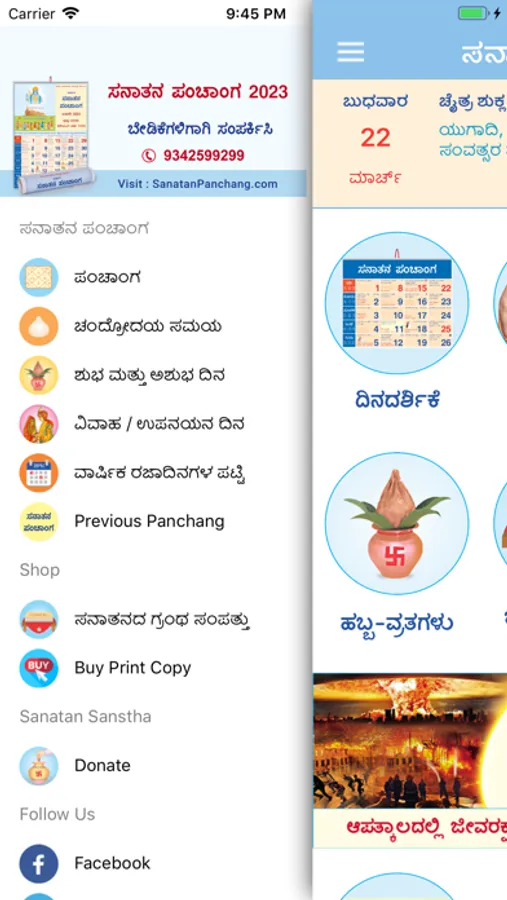 Kannada Calendar 2023 (Sanatan Panchanga) App Features -