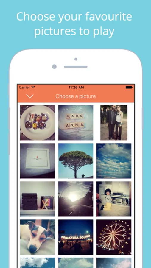 - Take a picture from your iPhone camera or choose it from your camera roll and start having fun doing puzzles with pictures taken by you.