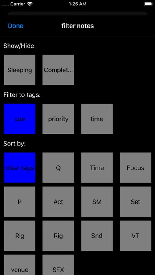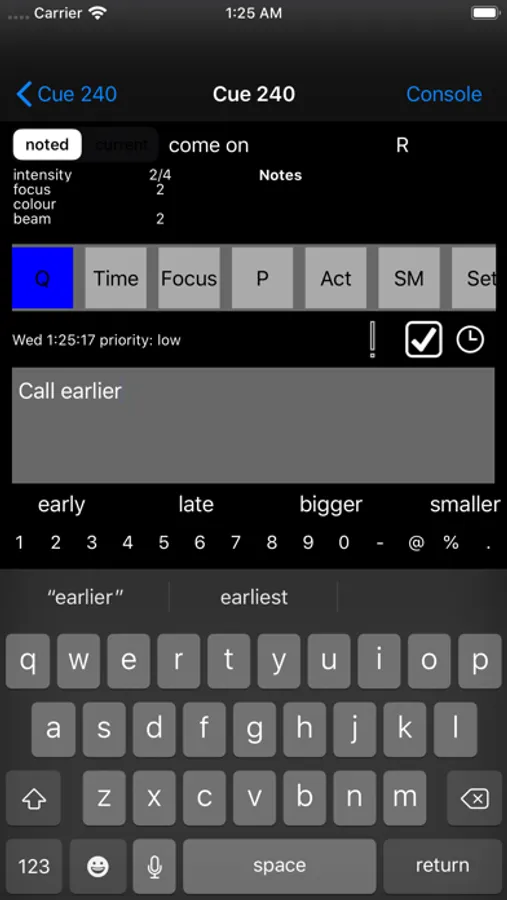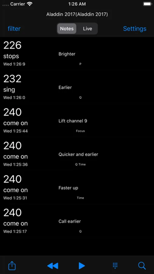- Add multiple notes to cues, tagging notes with categories such as "Plotting", "Cueing" or "Focus" - all tags are user definable