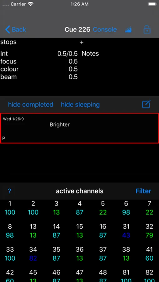 - Keeps cue details cached on device, allowing you to review details of the show and your notes when not at the console