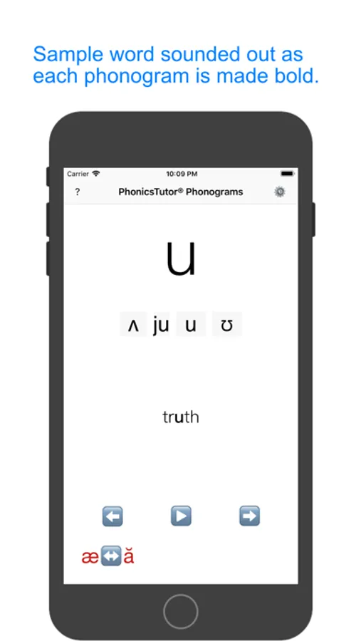 • The App sounds out each word by making bold each phonogram while saying the phoneme