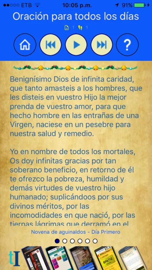 Lleva día a día las lecturas de las consideraciones sin necesidad de saltar entre páginas o vínculos. Utiliza voz sintetizada del teléfono para leer toda la novena y para los gozos utiliza grabaciones de audio.