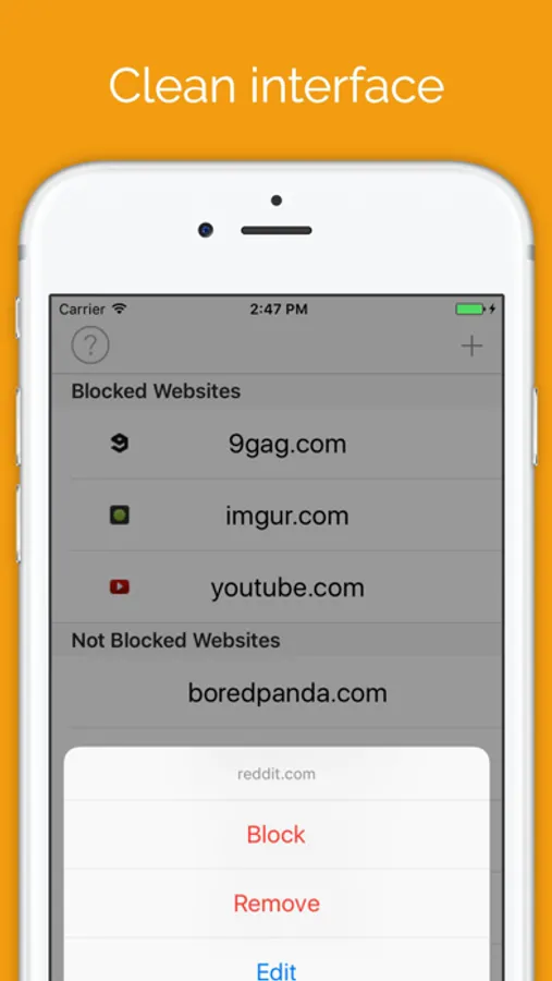 This app allows you to temporarily block distracting (or all) websites on Safari browser. You can unlock them again but it requires that you think twice before doing so: "Do I really need to browse funny cat pictures right now?". Optionally you can set a timer, not allowing you to unblock distracting websites until the time is up.