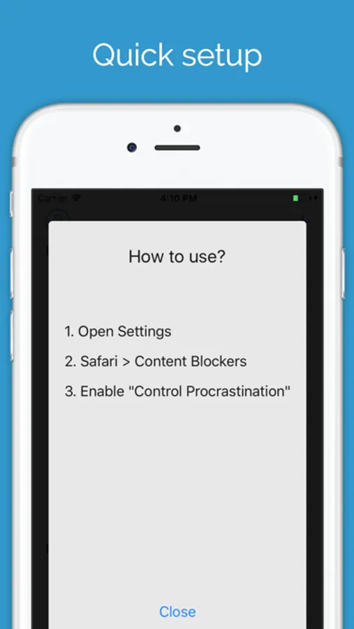 Inspired by a well known SelfControl, it aims to provide a similar functionality on iOS.