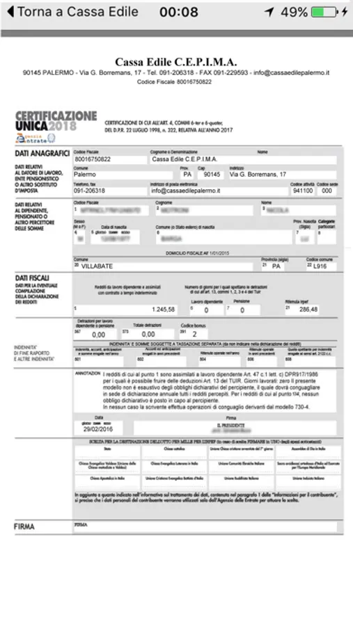 E' anche possibile scaricare il modello di Certificazione Unica (CU) rilasciato dalla Cassa Edile e trasmetterlo al proprio CAF / Consulente per la dichiarazione fiscale.