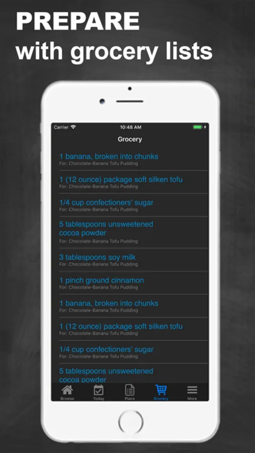 - Grocery Lists: Easily add all ingredients from a meal to your grocery list to be best prepared for cooking time