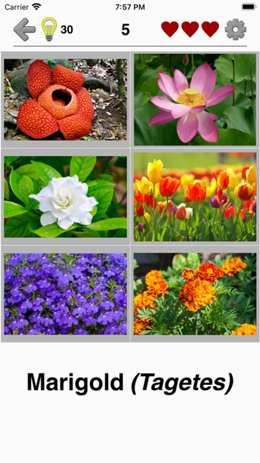 Guess the 110 most beautiful flowers! There are photos of garden plants and forest wildflowers, blooming tulips and exotic rafflesia, red roses and bright yellow sunflowers.