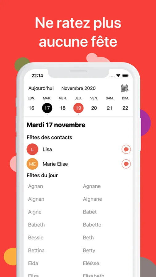 - Visualisez directement à l'ouverture de l'application les fêtes à souhaiter, avec raccourcis pour écrire à vous contacts