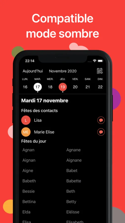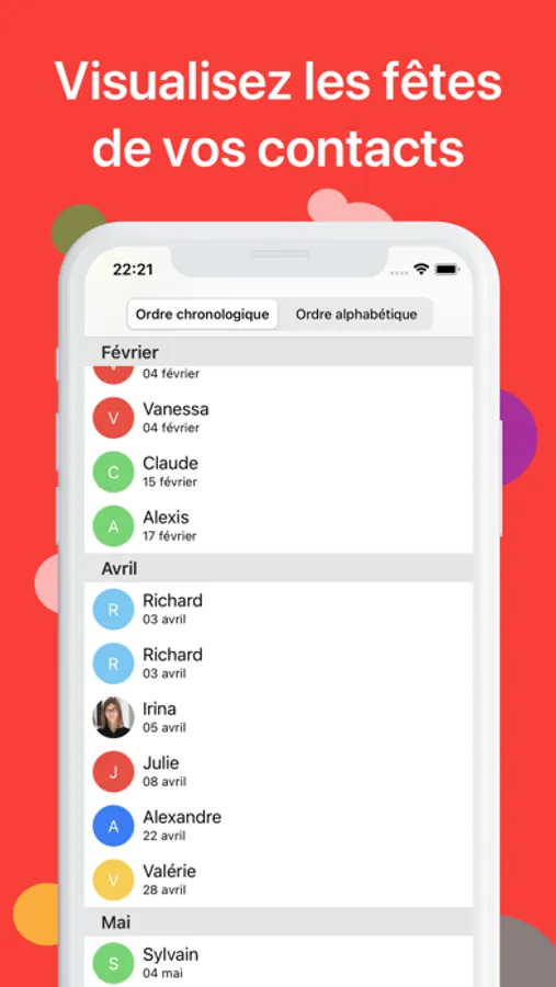 - Recevez une notification si vous avez des fêtes parmi vos contacts, pour n'oublier personne