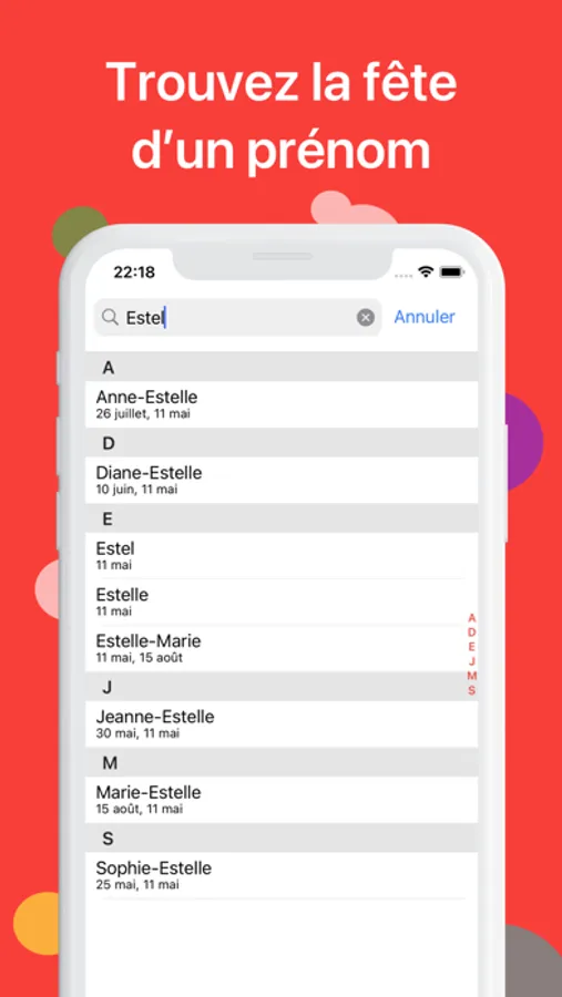 Je recherchais une application pour souhaiter la fête du jour à mes proches mais je n'en ai pas trouvé qui répondait à mes critères : simple, complète belle et fonctionnelle.
