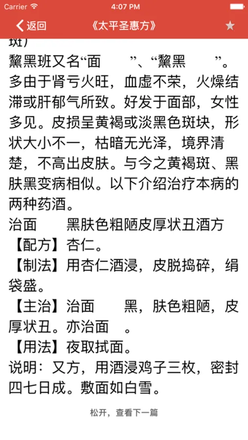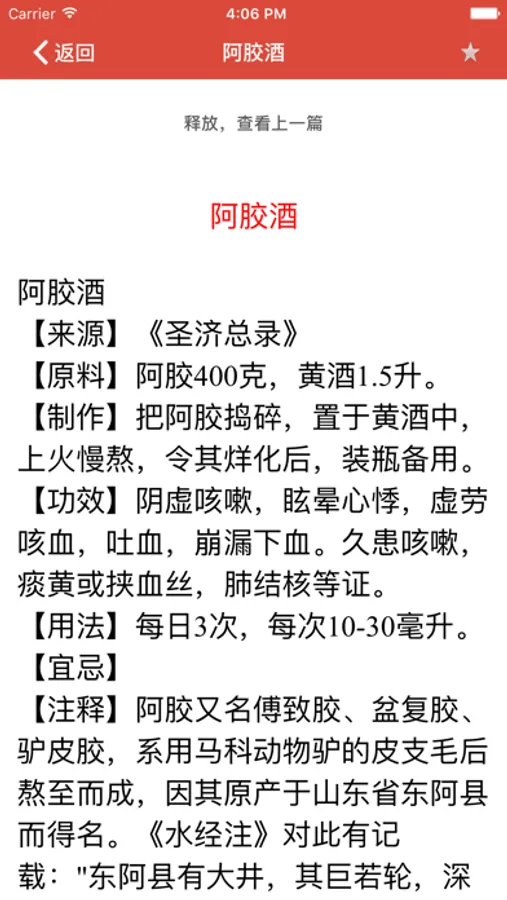 本App汇集了大量中医药药酒的制作方法,并对其功能、药效、用法等做了详细解释。