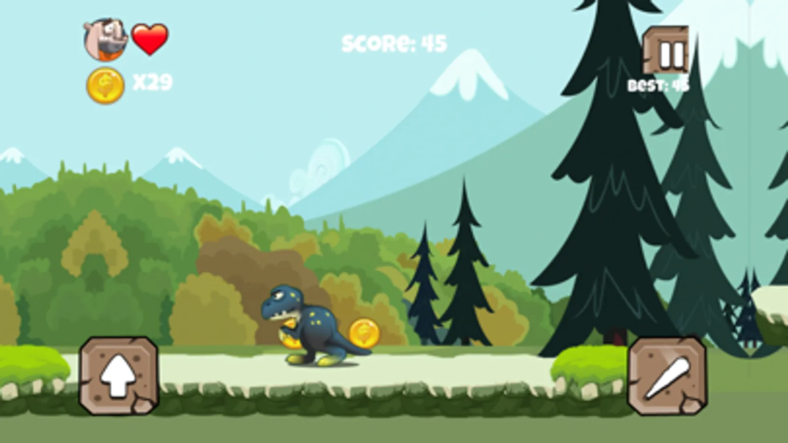 Simple game play. Just jump and throw your weapon to hunt Dinosaurs and bring home the bacon for your wife because she is hungry and starving for some food. This is no chicken hunt is about wild life to run and hunt for your life.