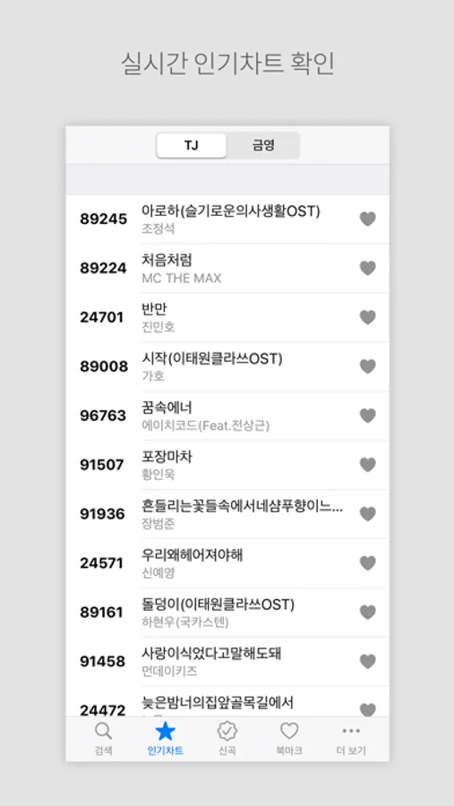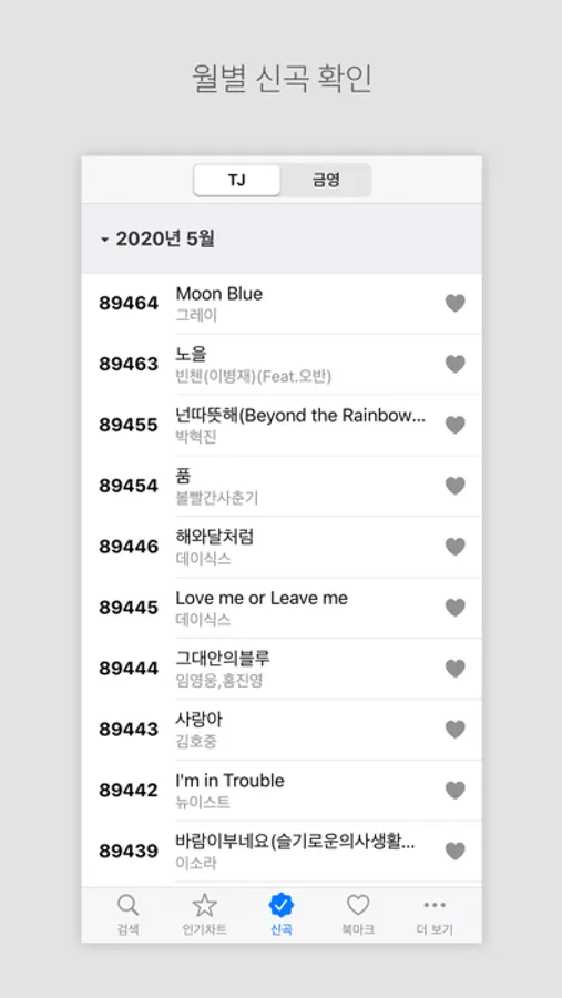 ● TJ 금영 노래방 월별 신곡 차트 제공