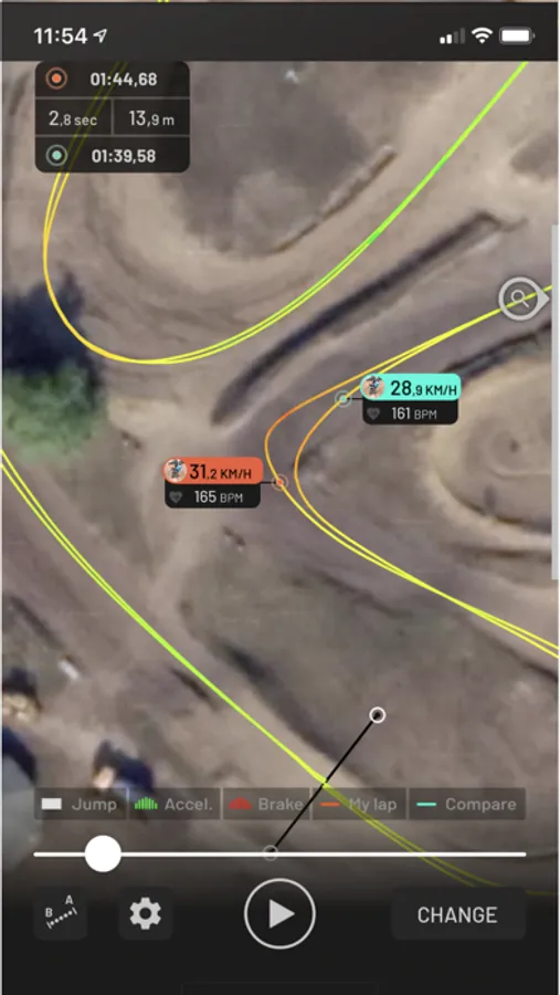 • Lap comparison: compare two laps head-to-head in a real-time animation