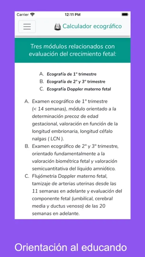 Esta aplicación no interactua con dispositivos médicos, tampoco utiliza algún dispositivo para efectuar los cálculos. Esta aplicación no genera diagnósticos, tampoco genera condiciones médicas.