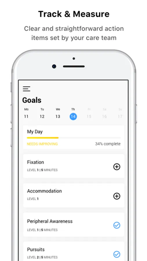 • You will receive a daily plan of actions and activities to track and measure your progress. You will also get personalized recommendations to help you navigate through your treatment course. If you want to collect your activity data automatically, you can connect to Apple Health.