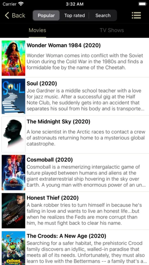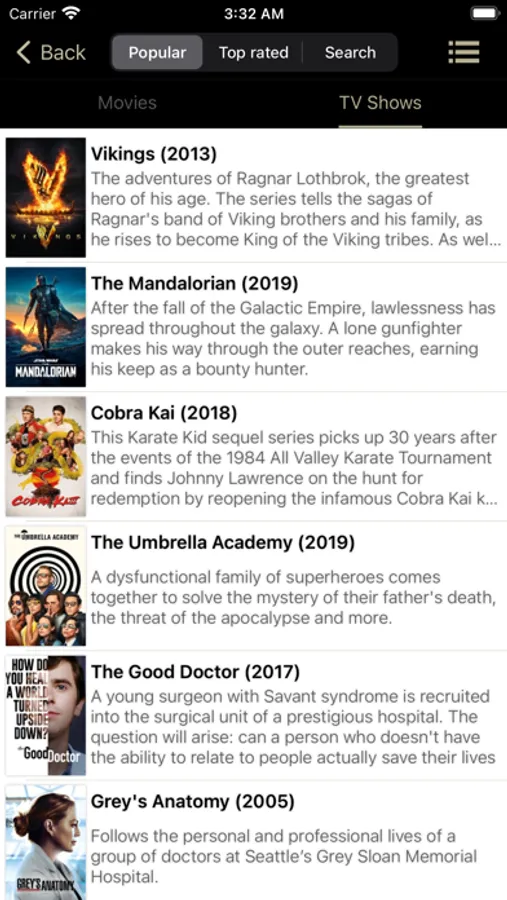 If you don't know what to watch anymore, the search function offers you a huge list of the most popular series or movies of the moment as well as the best rated ones.