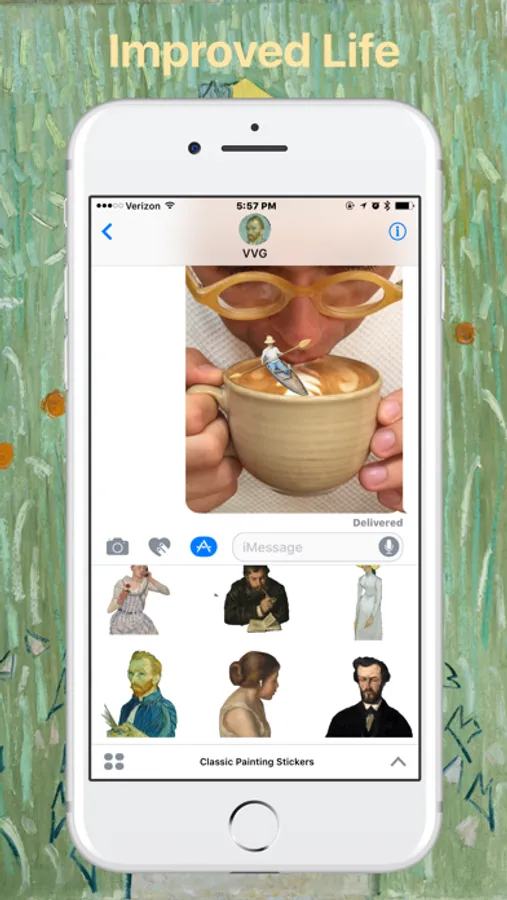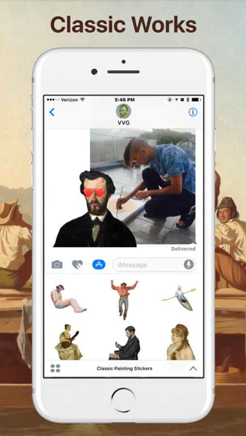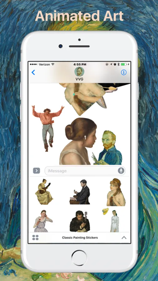 Get sophisticated with these animated stickers made from classic paintings. Each sticker is a character pulled from the depths of time and brought into modern life with a contemporary twist. Finesse your text with fine art.