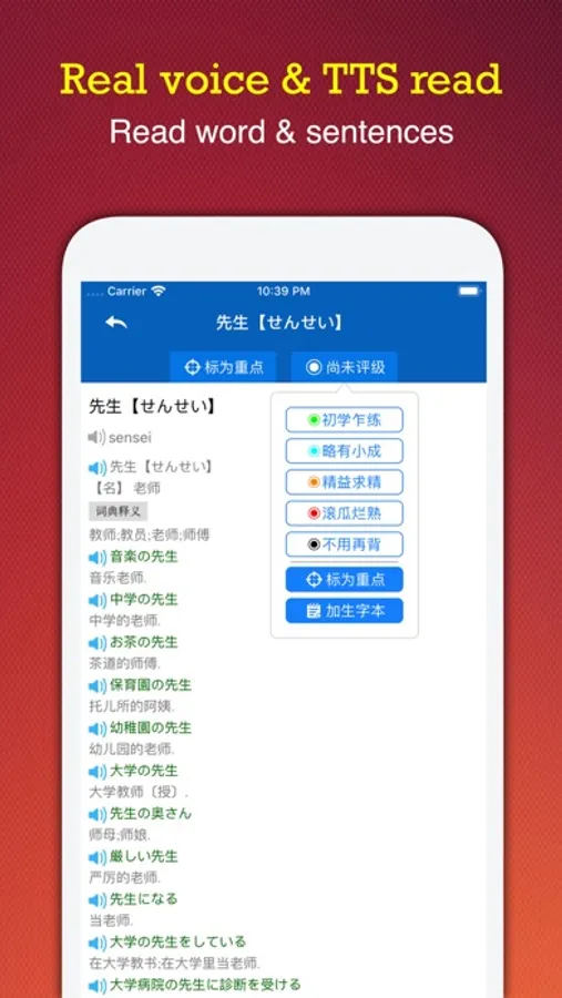 + Support reading words and example sentences.