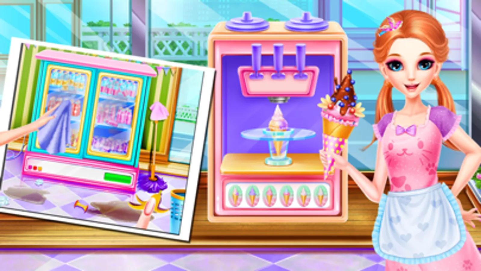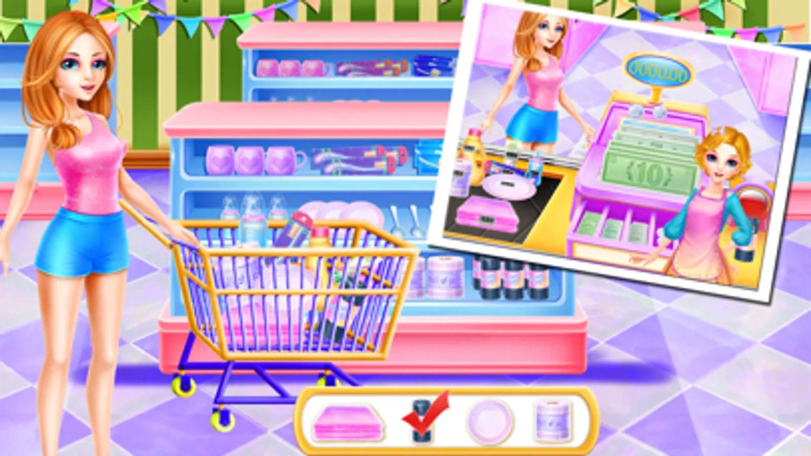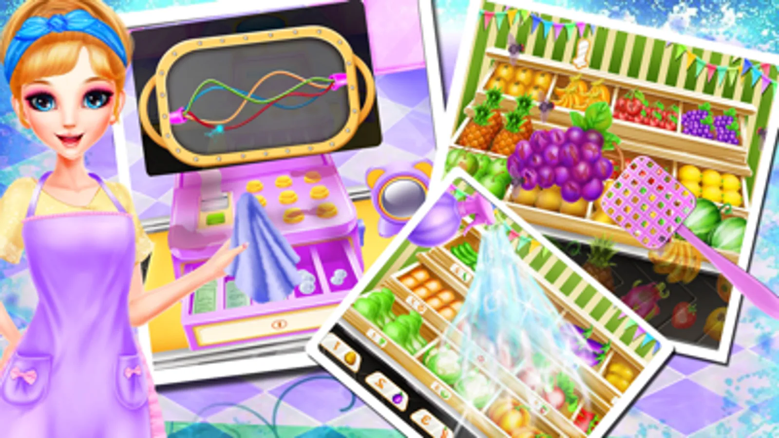 There is a beautiful girl in our brand new game. She is one excellent supermarket small headed. If you also want to experience the work in the supermarket, come to join us and have fun. Firstly, you need to dress up with supermarket small head’s clothes. Try your best to make her look nice and beautiful. After that come to clean the cashier desk and check the cash register. If there are something wrong with the cash register, come to repair it well and then start your one day’s work carefully. Come to kill those flies on the top of the fruits counter. Pick out some fruits that are not fresh. Then replace them with fresh ones. After this step, you need to make some fresh vegetables on the counter one by one and paste price label on the shelves. When you finish it, there will be customers come to purchase daily use products, help her choose right products one by one and pay at the cashier counter. Next, you need to clean the ground beside the beverage cabinet. Throw the garbage into the trash can and make the fallen beverage stand up. When there are customers need ice creams, you also need to prepare it according to customer’s taste. This will be the whole job for one supermarket small headed. Enjoy it.