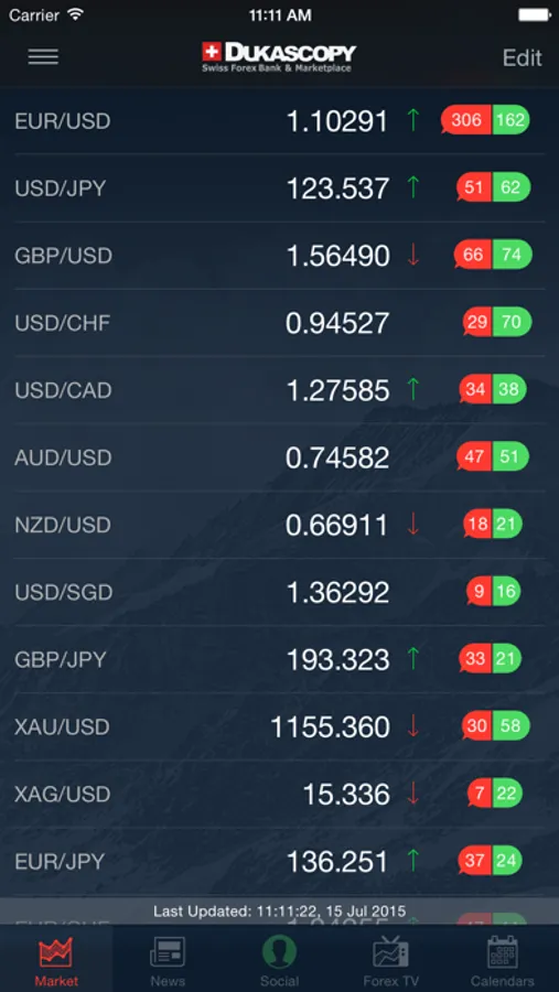 This application includes different financial information. Please be aware that information provided through this application does not constitute a forecast of the market value of the respective instruments at any future point either. It is a result of original and unique methods and technology of information gathering, compilation, analysis and statistical evaluation developed by Dukascopy Bank SA. In addition, information data related to specific financial instruments may reflect the current fair value of the relevant financial instruments as independently assessed by Dukascopy Bank SA and NOT their actual stock-exchange values at a given time. If you are looking to obtain actual stock-exchange quotes please contact the respective stock exchange or other entities that provide this information.