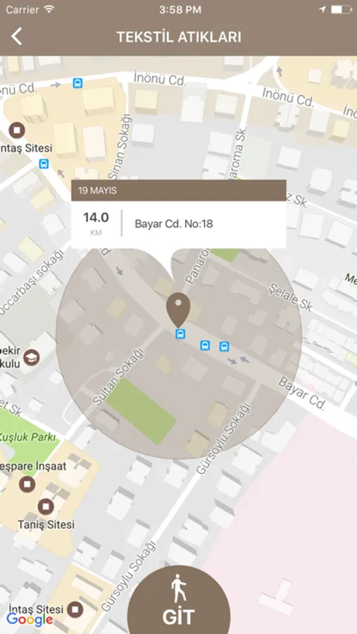 - Ambalaj Atıkları, Cam Ambalaj Atıkları, Atık Pil, Elektronik Atık, Bitkisel Atık, Tekstil Atık, Atık İlaç noktalarına “Navigasyon” üzerinden ulaşılabilir.