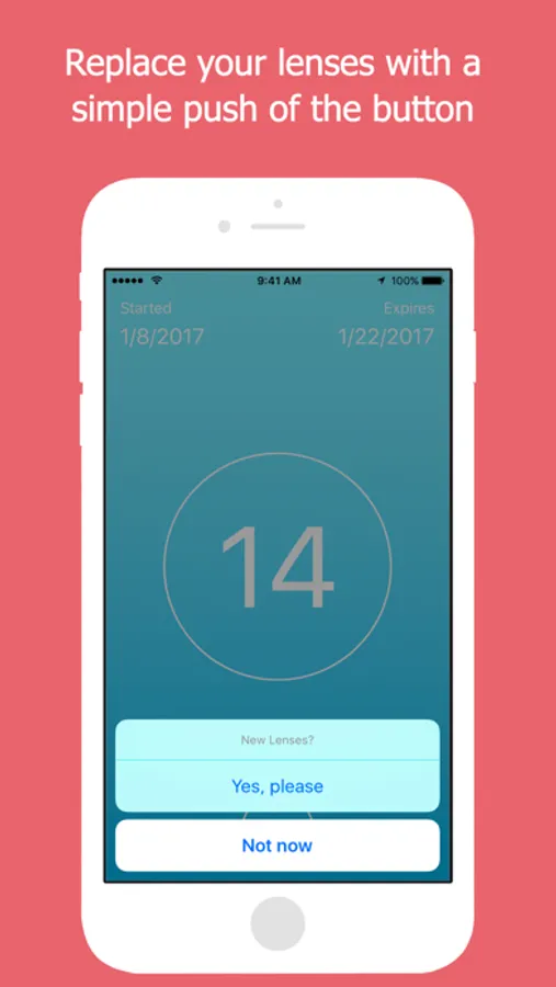 - LensAlert sends you a notification when your lenses expire and can keep sending notifications until you replace your lenses.