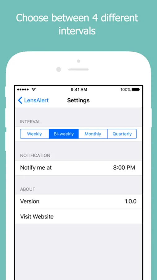 - LensAlert supports weekly, bi-weekly, monthly and quarterly lenses.
