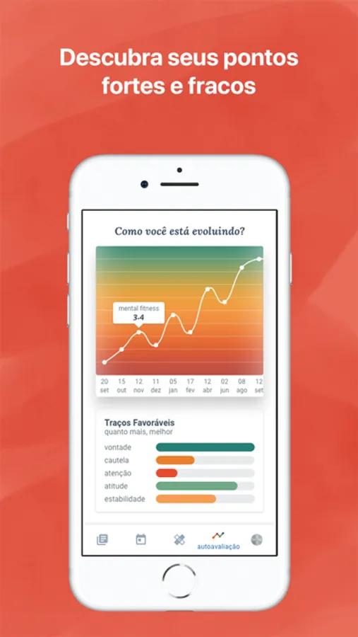 • Testes de perfil emocional: testes periódicos e cientificamente validados para você acompanhar seu estado emocional e ver a sua evolução.