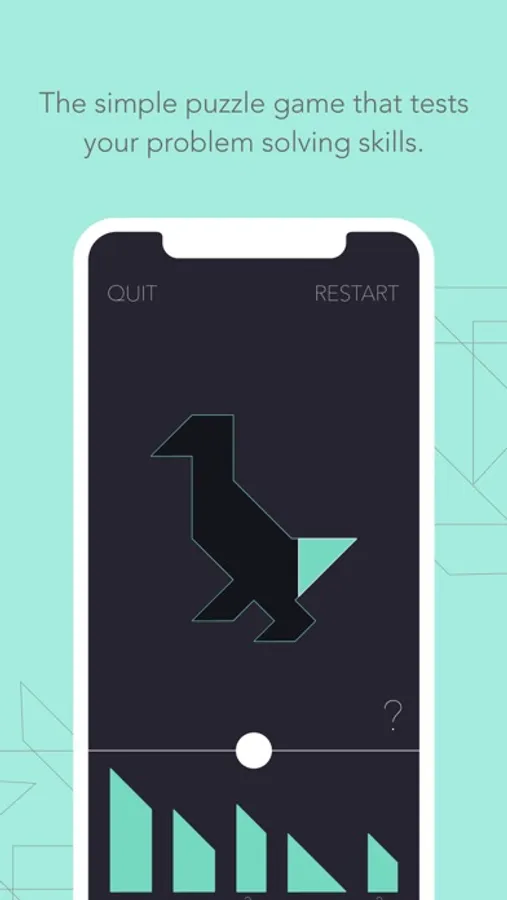 A fun and challenging retro-style puzzle game. Relax and enjoy thousands of unique 2D puzzles ranging in size from one to eight pieces. Each distinct puzzle is a work of art constructed from a unique set of eight trapezoidal and triangular geometric shaped pieces.