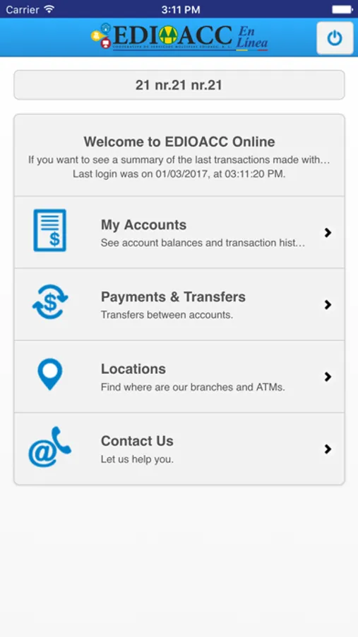 - Consultar los saldos de tus cuentas de EDIOACC y ver los movimientos más recientes.