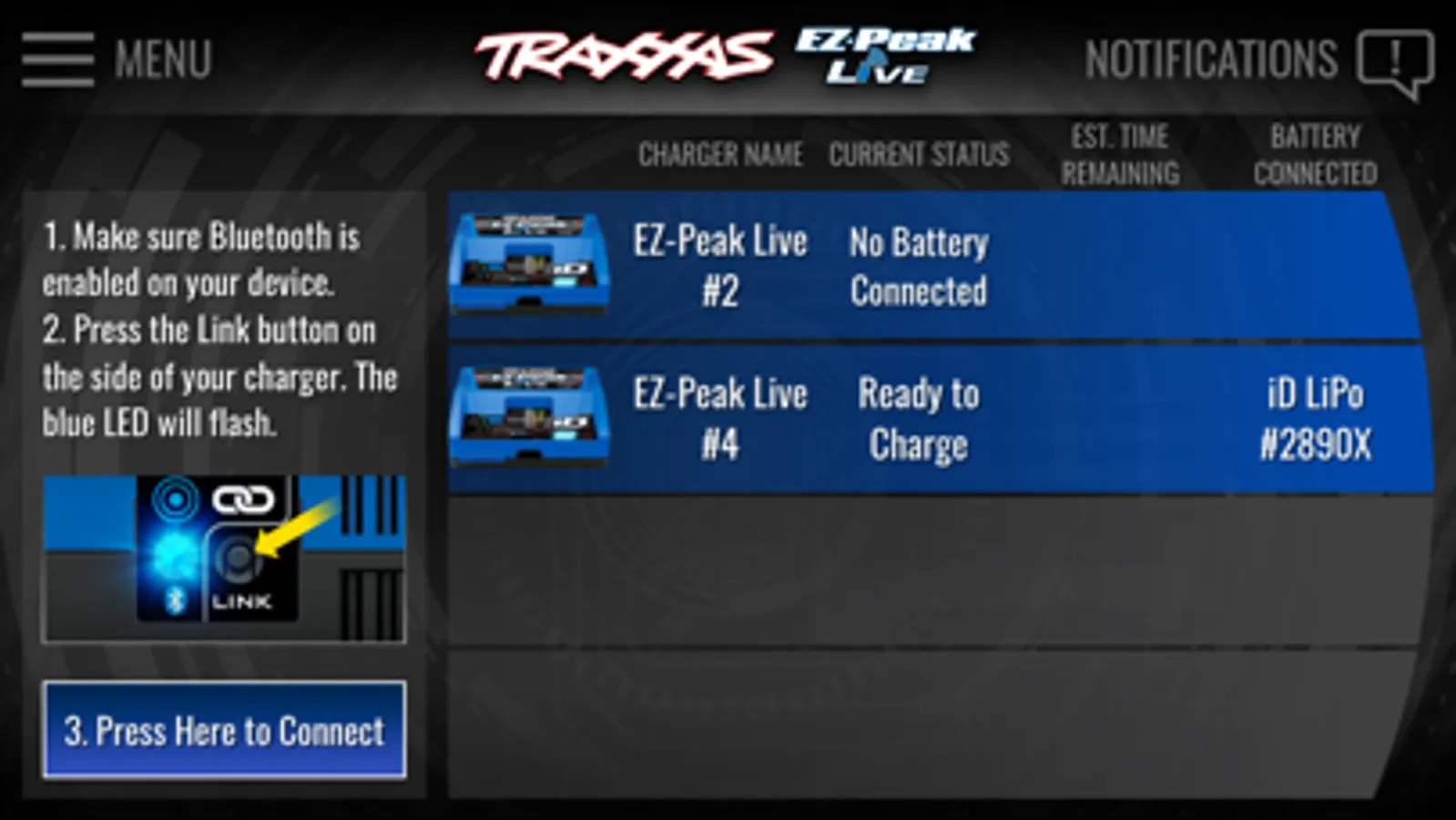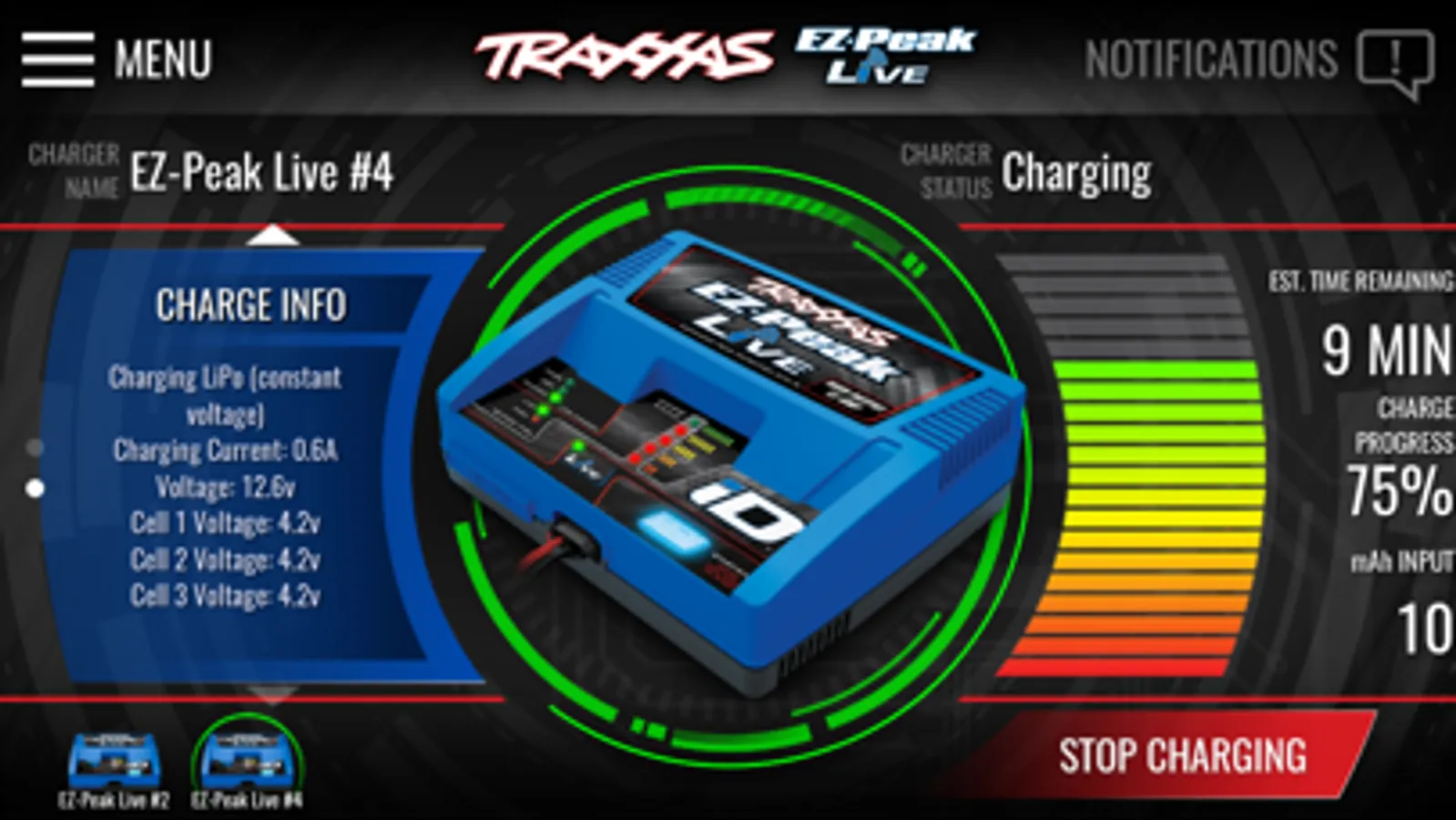 The Traxxas® EZ-Peak Live™ App connects wirelessly via Bluetooth® to the Traxxas EZ-Peak Live multi-chemistry charger (#2971). The app transforms your iOS device into a powerful tool to access the charger’s advanced features with an easy-to-use graphical interface. Connect up to four chargers to your iOS device to monitor charge status, receive remote alerts, and access the charger’s manual settings.