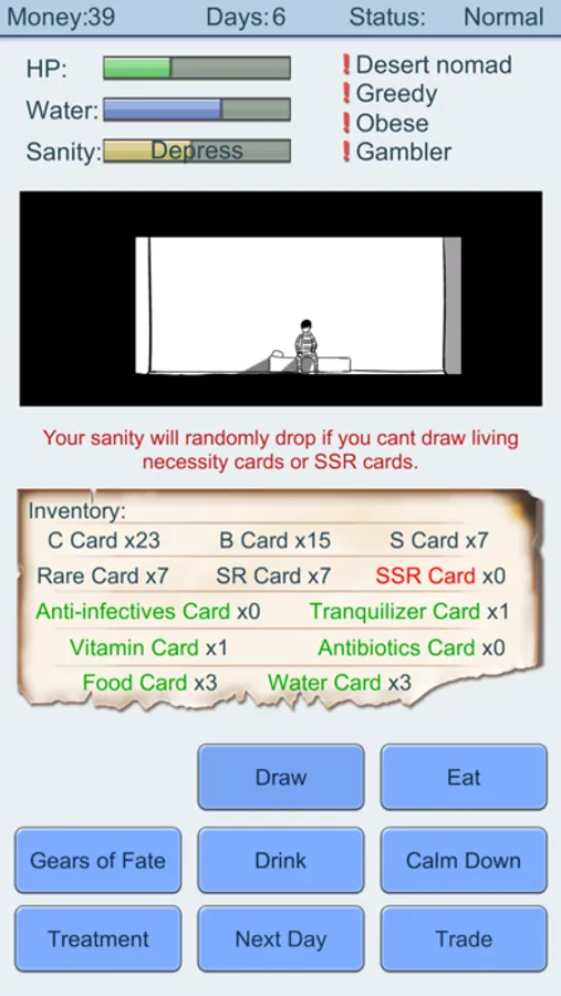 A strategic survival card game --- Use your talents to survive - by selling your drawn cards and draw more SSR!