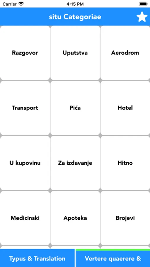 More than 2000 phrases are available for common conversation situations in Latin and English and are divided into categories like Tickets, Hotel, Dining, Hospital, Transportation, Sightseeing, Conversation, Airport, and etc. for easy use.