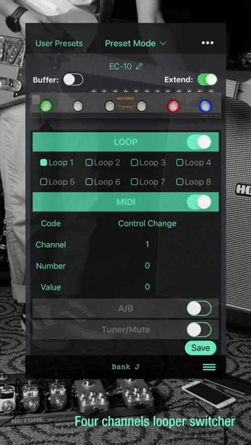 This app lets you set up and manage every aspect of your Cybery. You can: turn the built-in buffer on/off, switch between Direct/Preset modes, edit footswitch functions, expand hardware loops (another Cybery is needed) and update firmware. You can also save all your settings to a user preset so you won’t forget them.