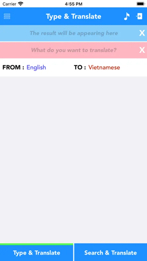 Look up default English to Vietnamese or Vietnamese to English sentences and phrases or manually type your own English to Vietnamese or Vietnamese to English words and sentences with a few clicks.