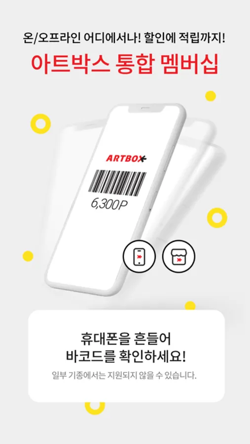 휴대폰을 흔들면 간편하게 아트박스 통합 멤버십 카드를 확인할 수 있어요.