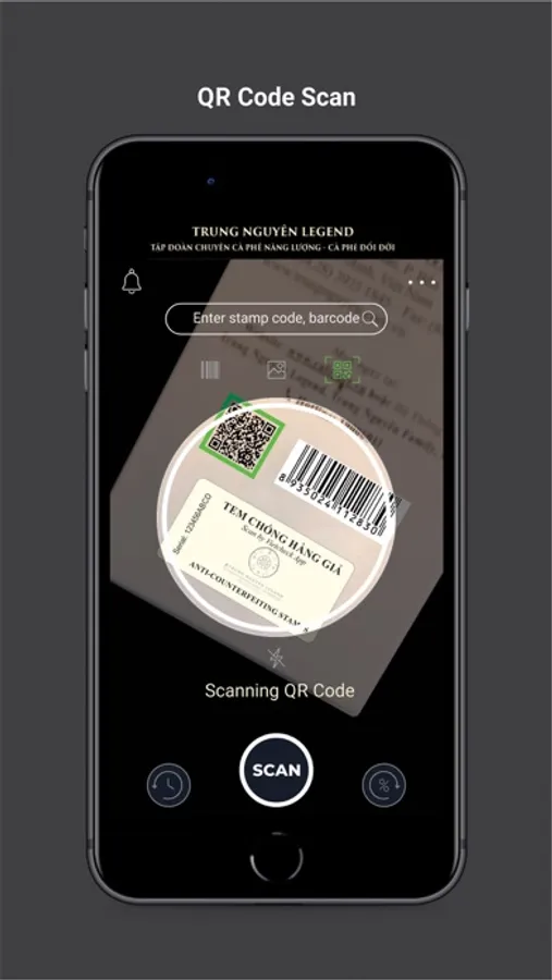 * Scanning Anti-counterfeit Stamps (a typical function): This function allows Vietcheck users to easily check the real/fake goods quickly by pointing the camera at the Anti-counterfeit Stamp or Encrypted Packaging, then Vietcheck will verify the hidden (invisible code) security code to authenticate a genuine product. In addition, Vietcheck also allows the verification of the visible security code (if any) on the anti-counterfeit stamp.